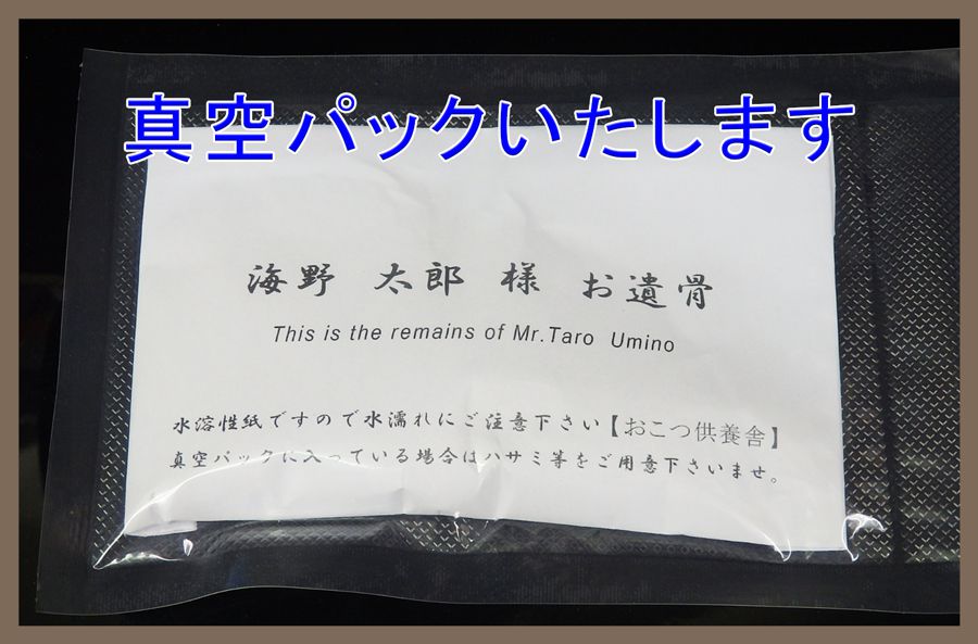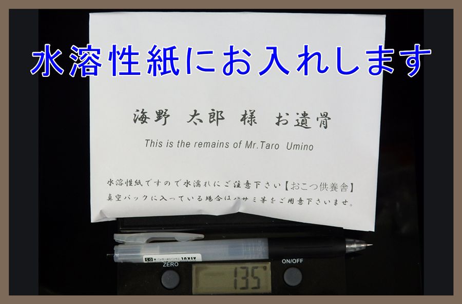 粉骨後のお遺骨を水に溶ける【水溶性紙】に小分け梱包して